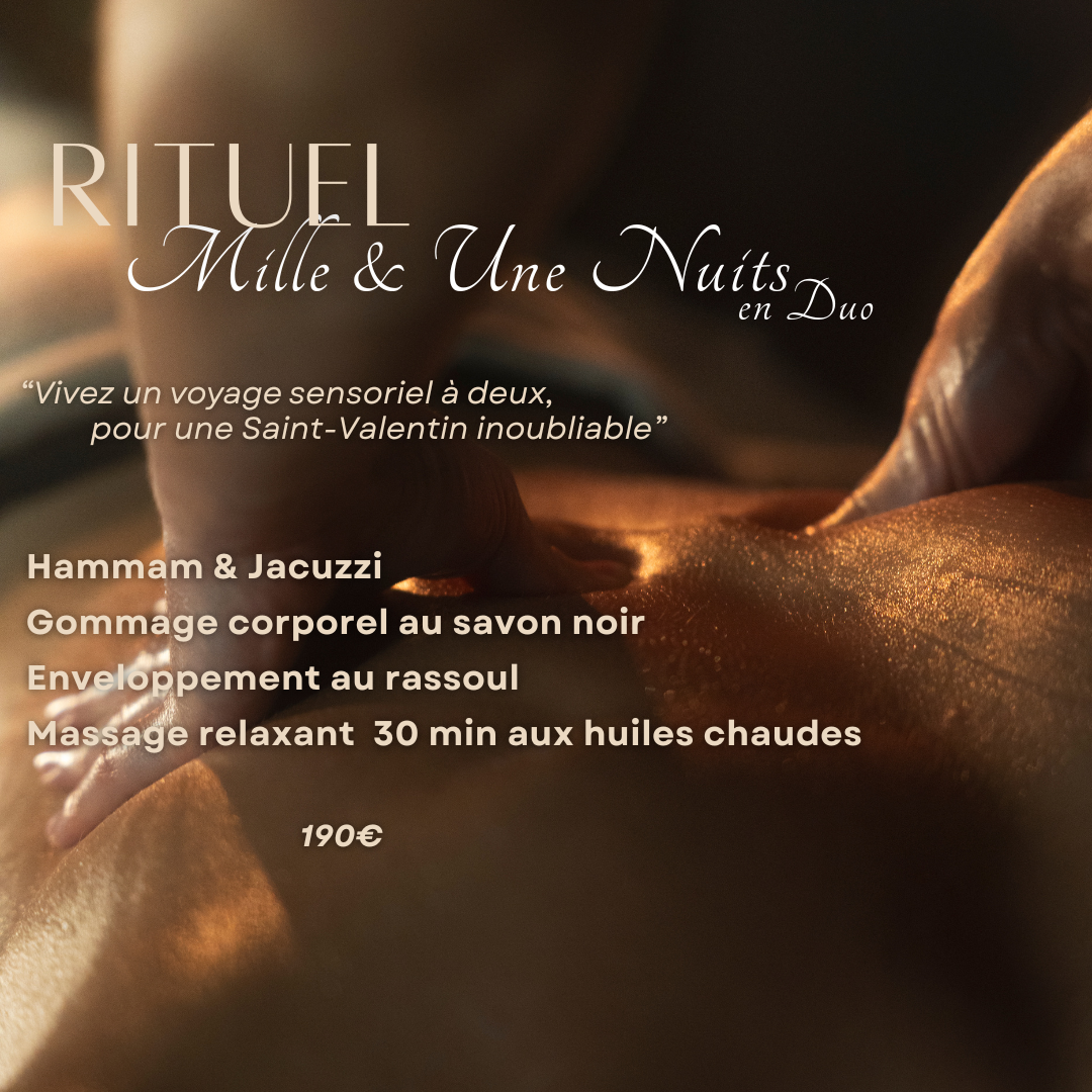 Le Rituel Mille et Une Nuits en duo est une invitation à la détente profonde, dans une atmosphère chaleureuse et raffinée.